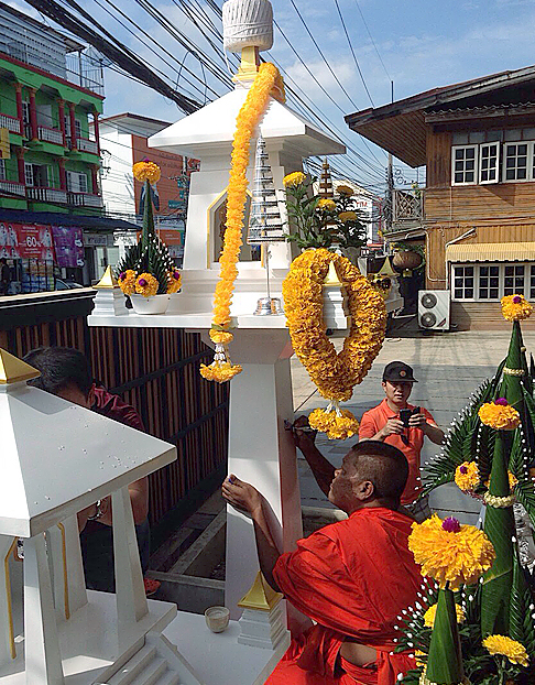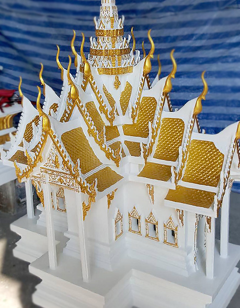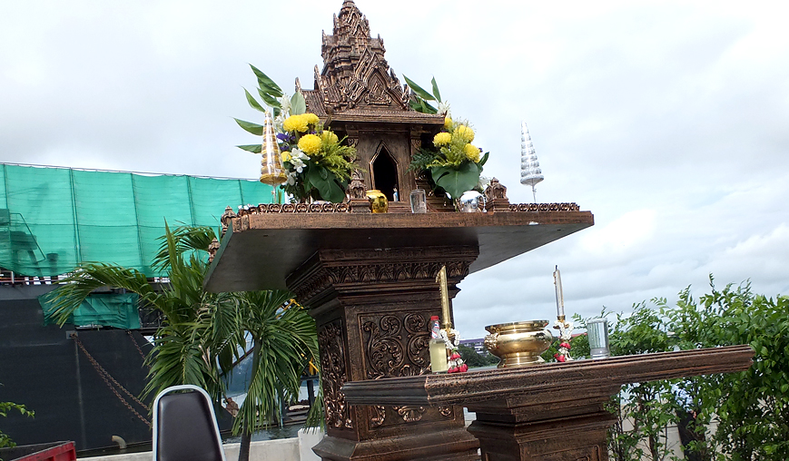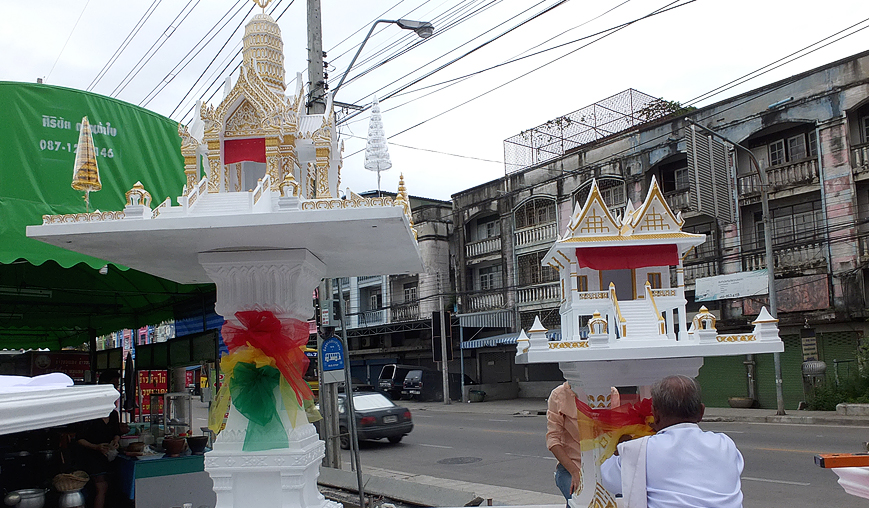 | สถานที่ : โครงการไอแอมไชน่าทาวน์ ถ.เจริญกรุง แยกแปลงนาม กทม. ประเภทศาล : ศาลพระพรหม ขนาด 12-14 นิ้ว เกรดเอ ลายคมชัดสีขาวลายและหลังคาทาทอง |