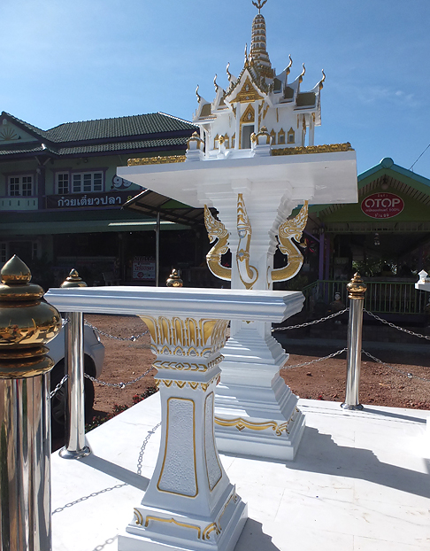 | สถานที่ : อบต.ท่าชัก ต.ในเมือง อ.เมือง จ.นครศรีธรรมราช ประเภทศาล : ศาลพระภูมิทรงลพบุรีเล็ก เสานางฟ้า สีขาวเขียนทอง ศาลเจ้าที่สามมุขเล็ก สีขาวลายทอง |
