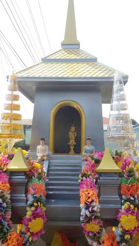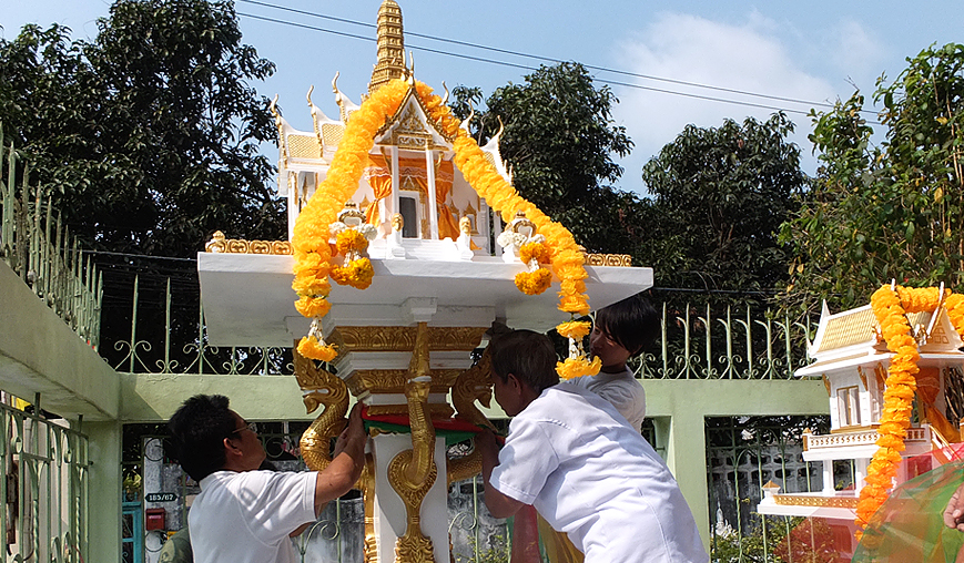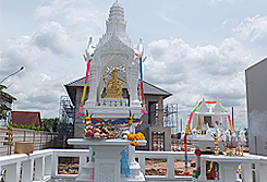 | สถานที่ : หมู่บ้านรุ่งกิจวิลล่า 7 แขวงคลองสามประเวศ เขตลาดกระบัง กทม. ประเภทศาล : ศาลพระพรหมทรงบุษบกใส่พระพุทธ สีขาวทองทึบ |