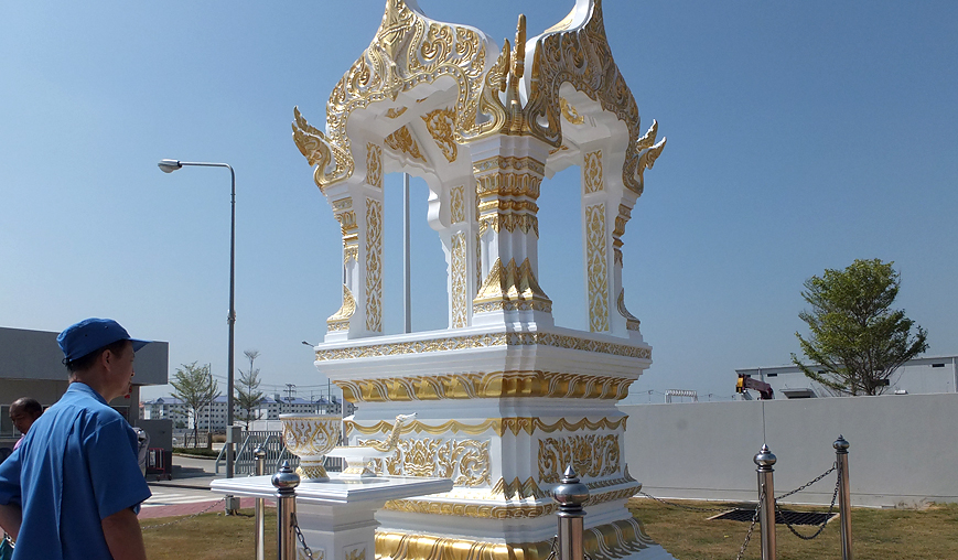 | สถานที่ : บริษัท ฟูจิคูระ อิเล็คทรอนิกส์(ประเทศไทย) จำกัด ต.บ้านกลาง อ.เมือง จ.ลำพูน ประเภทศาล : ศาลพระภูมิทรงวัดพระแก้วสีขาวแดงลายทอง |