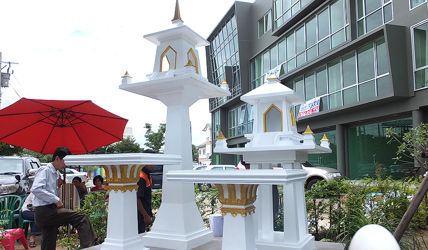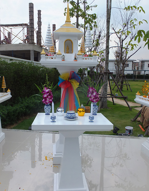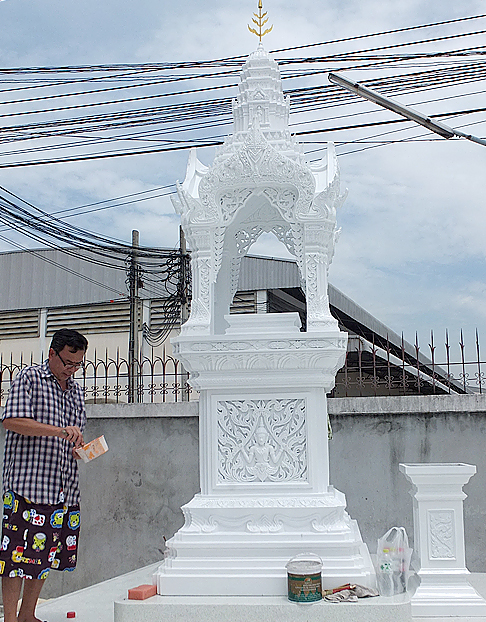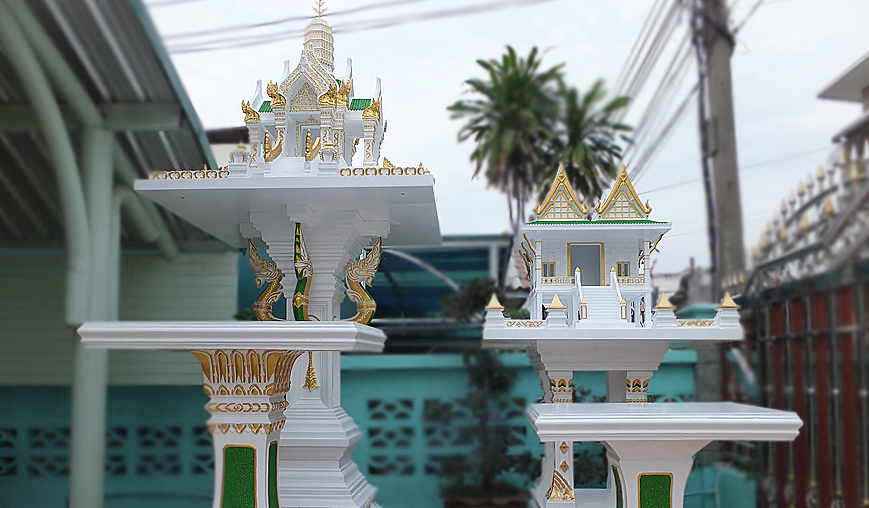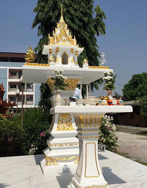| สถานที่ : บริษัท เอส พี เอ อินทีเกรชั่น จำกัด จ.ปทุมธานี ประเภท : ศาลพระพรหม 12 นิ้ว แบบไม่มียอด สีขาวล้วน |