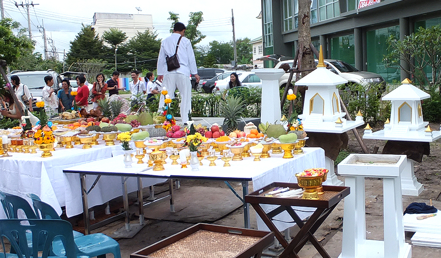 | สถานที่ : บริษัท ซิสเต็ม3 จำกัด(จำหน่ายอุปกรณ์ไฟฟ้าแรงสูง) จ.ปทุมธานี ประเภทศาล : ศาลพระภูมิบางปะอินกลาง และศาลเจ้าที่เรือนไทยกลางเสาลอย |