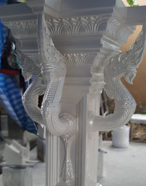 | สถานที่ : บริษัท เอ็ม.อี.เมดิเทค จำกัด ถ.อ่อนนุช แขวง/เขต สวนหลวง กรุงเทพฯ ประเภทศาล : ศาลพระภูมิทรงลพบุรีใหญ่ เสาพญานาคเล่นน้ำ สีขาวลายเส้นทอง |