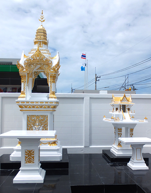 | สถานที่ : บริษัท กาแนช อินเตอร์เทรด พระประแดง สมุทรปราการ ประเภท : ศาลพระพรหม 12 นิ้ว สีขาว และศาลเจ้าที่สามมุขใหญ่ สีขาวเขียนลายทอง |