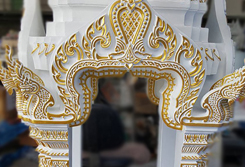 | สถานที่ : บริษัท รุ่งสว่างปทุมธานี จำกัด ตำบลบางพูน อำเภอเมือง จังหวัดปทุมธานี ประเภท : ศาลพระภูมิทรงโดมเสาลายหงส์ สีขาวเงิน ศาลเจ้าที่สามมุขใหญ่ สีขาวเงิน |